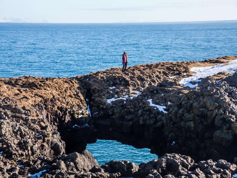 From the car park, follow the path for 100m to the cliffs, then continue east on the cliff path to the harbor, returning to the car park along the road - allow 45-60 minutes as there is plenty to see. The walk is easy and enjoyable, but take care as the trail is uneven in places and goes quite close to the edge in parts. You can also extend the walk by going along the coast in a westerly direction as far as the next village, Hellnar (30-40 minutes), or continuing east along the cliffs of Solvahamar.
