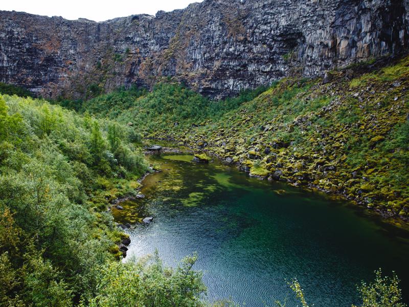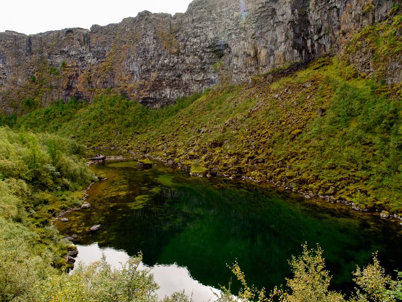Yet its cliffs are so regular one might be tempted to think subsidence and tectonic movements played a part. But there again, the legend says that Sleipnir, the Norse god Odin's eight-legged horse, put one of his hooves down here, leaving a giant hoof-print. Take your pick!