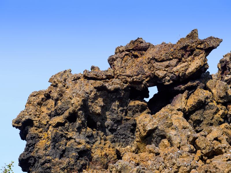 Look for Gatklettur (the cliff with the hole) and Alfakirkja (the church of the hidden people), which is open at both ends. There is a great view over the site from the viewpoint by the Dimmuborgir Café, at the car park and entrance.