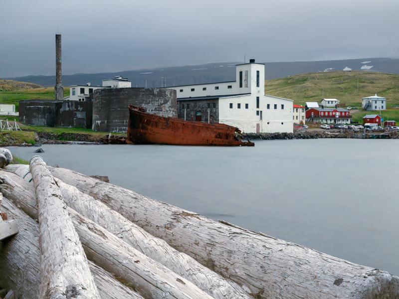 In sheltered Reykjarfjordur, Djupavík’s weather-beaten herring factory and rusting ship are all that remains of an era when this remote outpost was a hive of activity.