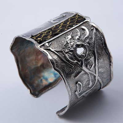 This kind of drawing power has activated Dyrfinna’s intertwining of fish skin and silver into decorative patterns of flowers and other plant life.