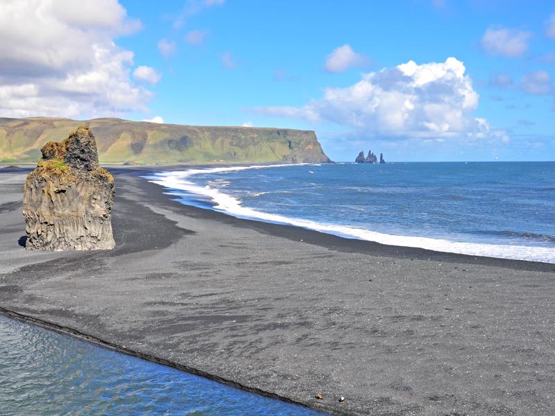From the car park, bear west to follow the path along the coast and up to the lighthouse. There are good views of the natural rock arch and the black sand beaches stretching in both directions. Return by the same route and when you arrive back in the car park, spend some time exploring the interesting rock features close by, as well as the puffins nesting on the cliff north of the car park. Please note: it can be very dangerous to hike at Dyrholaey when it is windy or foggy - whatever the weather stay well back from the cliff edge.