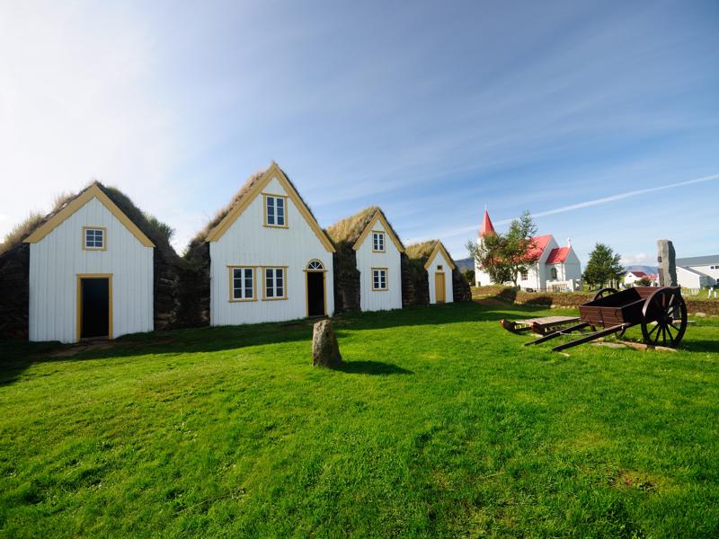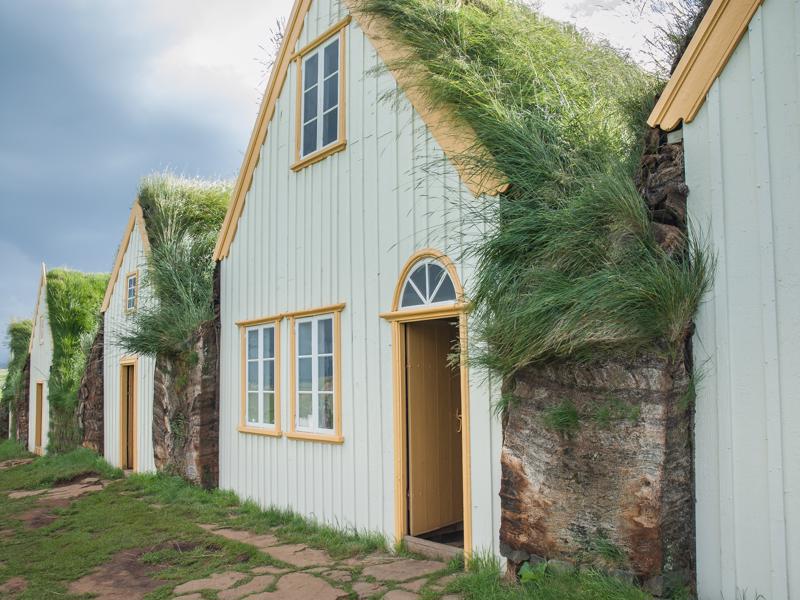 Glaumbaer is a magnificent example of a turf farm from the 18th and 19th centuries. This type of housing was universal in Iceland until around 1900 when it was gradually replaced by concrete, which is typical in most contemporary Icelandic buildings.