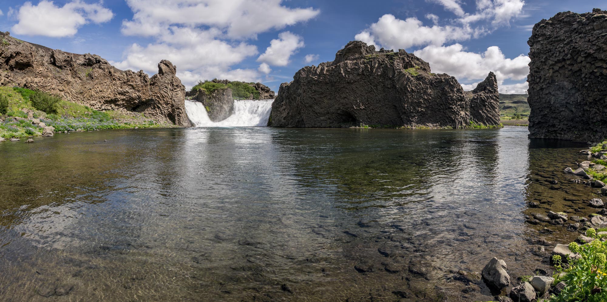 This is a lovely symmetrical waterfall and the story behind its name is interesting. When a famine spread over the valley following the 1104 eruption of Hekla, the locals gathered by the falls to discuss a plan of action.
