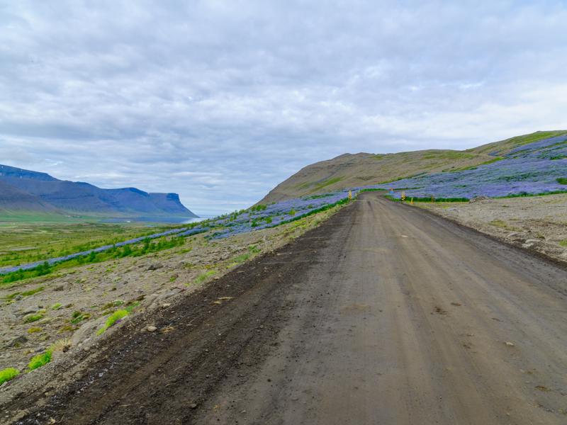 Road 60 winds its way over the heath in an amazing set of twists and turns. From the top of Hrafnseyrarheidi heath is a great view over Arnarfjordur and the rugged mountain range of the West Fjords highest peak Kaldbakur (998m).