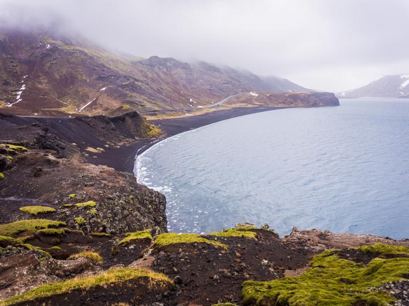 Close by you'll find the moody volcanic landscape of Lake Kleifarvatn. A big earthquake in 2000 caused water to drain out of the water basin, just like a plug being taken out of a bath.