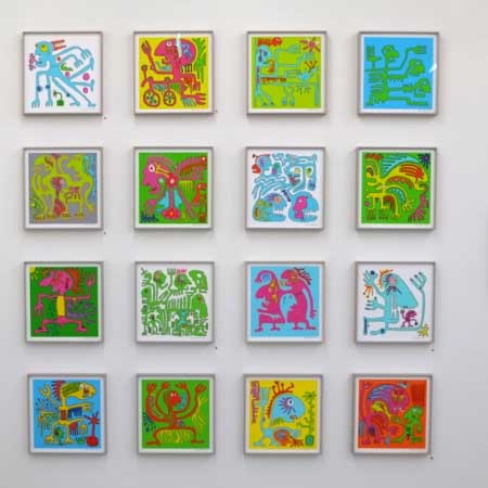The works are both in color and black&white Drawn, printed, recorded and conceived.