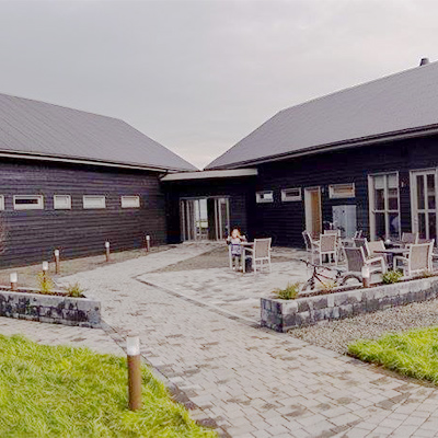 There is a big outside area with a great view over Hrísey island, mountains and Þorvalds valley. We have two outside hot tubs that take 8-10 people each.
