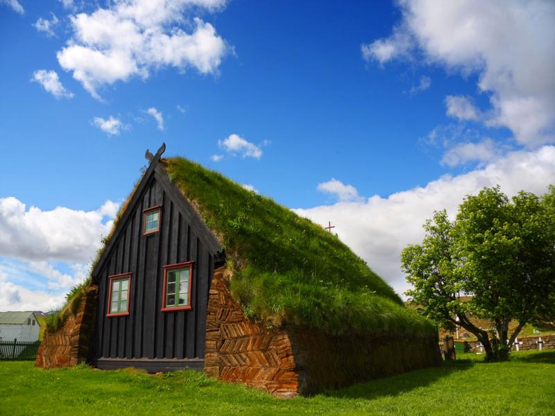 Just off road 1, west of Varmahlid, don’t miss Vidimyri’s beautifully restored turf church built from driftwood. There has been a church on the site since the year 1000 but the present turf church dates from 1834, was refurbished in 1936 and repaired several times since then.